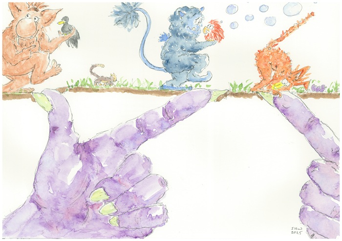 In my work, I explore what it means to be human—messy, unpredictable, and full of delightful quirks; unashamed of whimsy, simplicity, open-heartedness and the freedom and richness inherent in ‘perfect imperfection’. “Perfectly imperfect” has almost become a motto for my life and art and is central to my intention when creating it – whether illustrations or independent, larger scale works.
