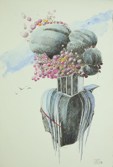 Versatile in skill and scale Viktor creates fine wedding jewellery to large monumental sculptures in stone. Drawing is an important part of his design process with sketches appearing like an alchemical formula ahead of any three-dimensional piece of work. More recently Viktor’s drawings have developed into watercolour paintings, giving expression to his rich imagination.