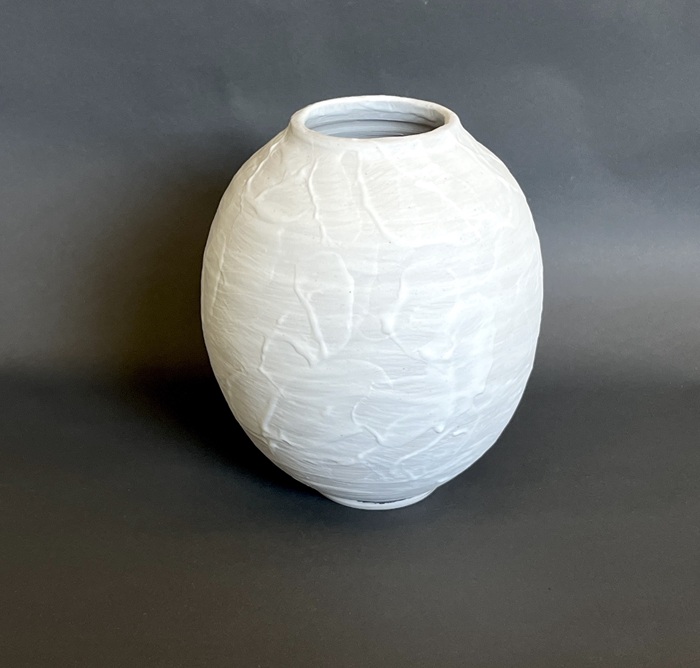 Bridget’s has participated in most of our recent Annual Group Ceramics exhibitions including ‘Habitat’ 2024, with the remarkable Salt Series, Luminescence and ‘Rockwall’ inspired by the minutiae of life on the seawalls of Point Lonsdale, and the 2025 ‘Germinate’ with the ‘Origins of the Earth and Water’ series.