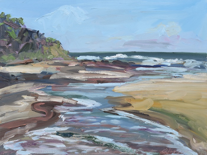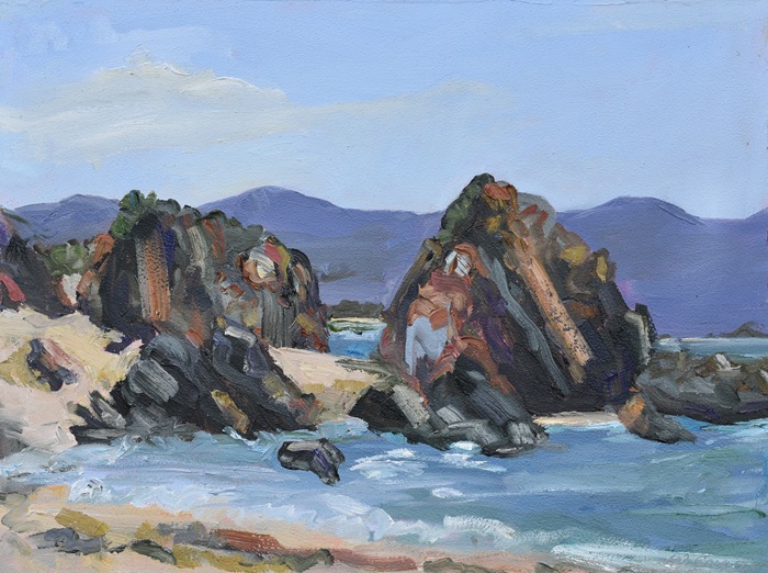 Wendy responded to the unique landscapes of the Wollemi, Blue Mountains and Gardens of Stone National Parks during her recent residency at BigCi. She painted regularly, ‘en plein air’, engaging with the landscape, responding to its ever-changing weather, light and moods in oil on board. When painting en plein air, the artist is creating on site and there is a sense of urgency, to capture the environment and its effect, before it changes and loses the light or the heavens open. Wendy says she “loves the immediacy of being in the landscape and responding to it, dealing with the logistics of transporting materials, climactic conditions and being out on my own and really ‘seeing’ the forms, colours and textures of nature”.
